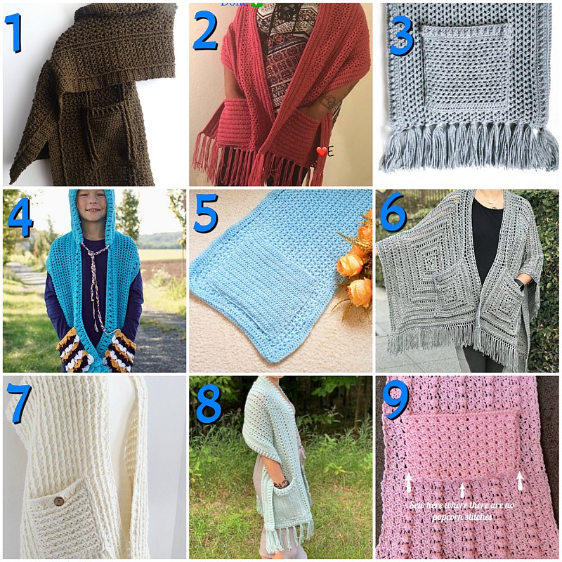 10 Pocket Shawls – Free Crochet Pattern link Blast