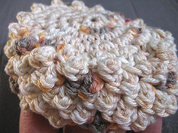 Note: Your pattern for the Raspberry stitch is sc, dc, sc into the same stitch, the first sc of this combination, is the stitch you are supposed to be working in, for 2nd round of Raspberry stitches. The textured side is on the back of the stitch, after a few rows you should be able to see it as the picture shows below, on the inside of the hat.